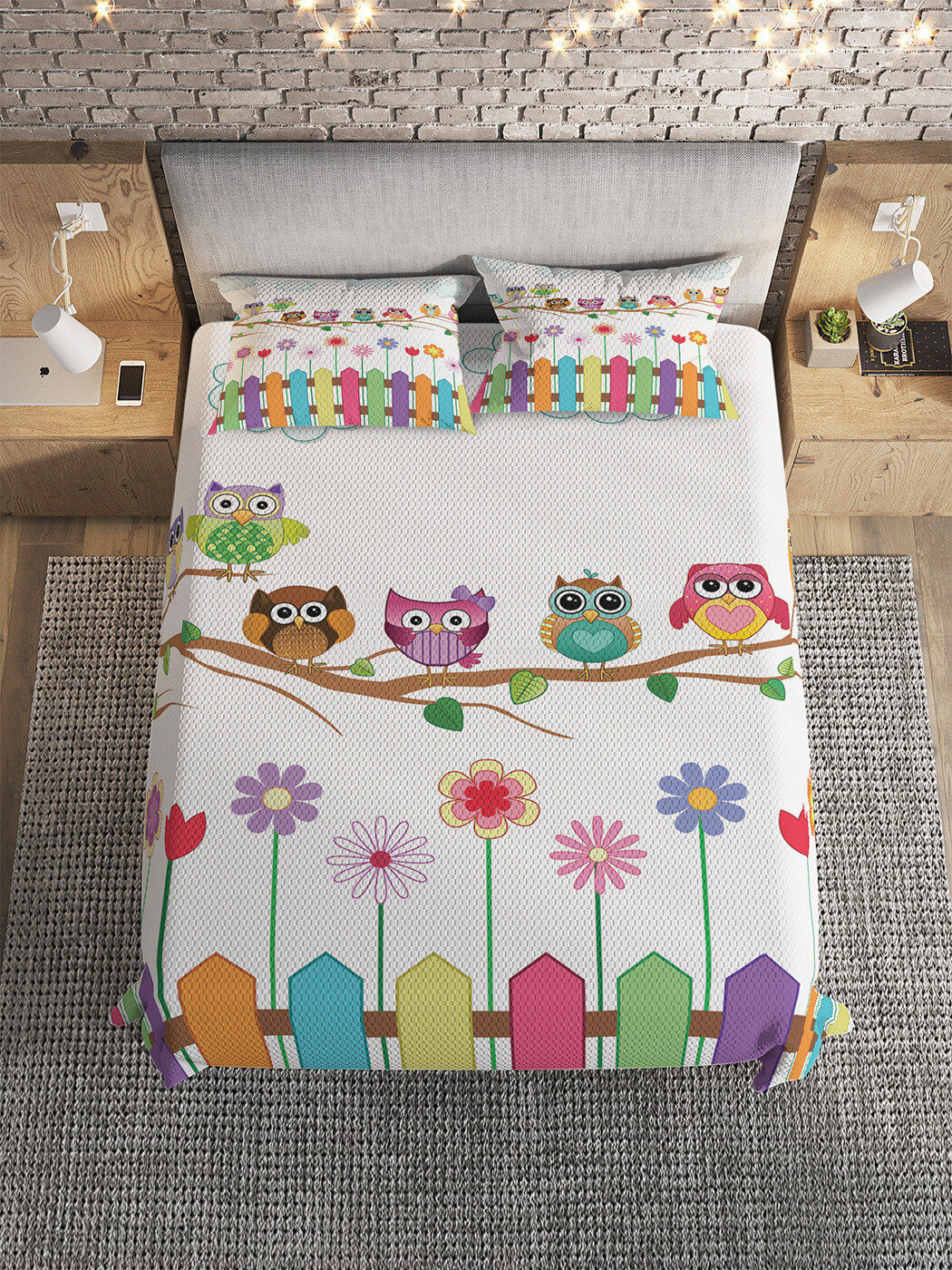 Покрывало Ambesonne 160х220 см с 2 наволочками 50x70 см Покрывало Веселые совы 220x160 и две наволочки 70х50 (размер: 1.5-спальный)