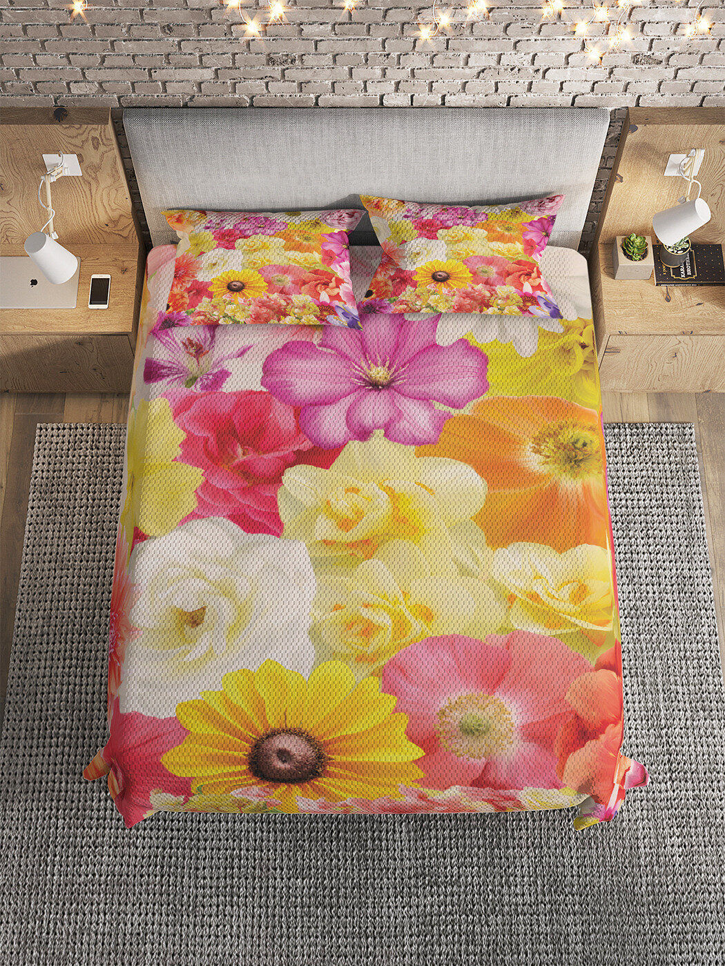 Покрывало Ambesonne 220х235 см с 2 наволочками 50x70 см Покрывало Коллекция цветов 235x220 и две наволочки 70х50 (размер: евростандарт)