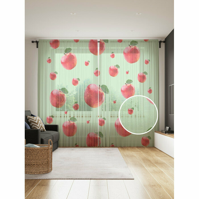 Фототюль JoyArty "Яблочная мозайка" 145x265см (2 полотна со шторной лентой + 50 крючков) Фототюль Яблочная мозайка 2 полотна со шторной лентой + 50 крючков 145x265 см