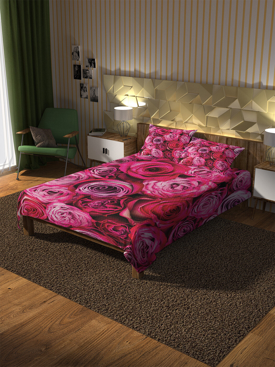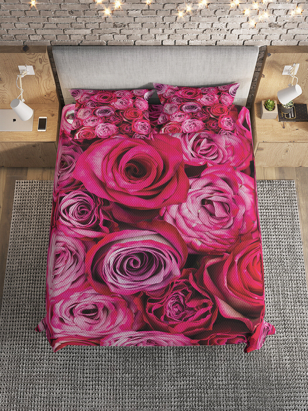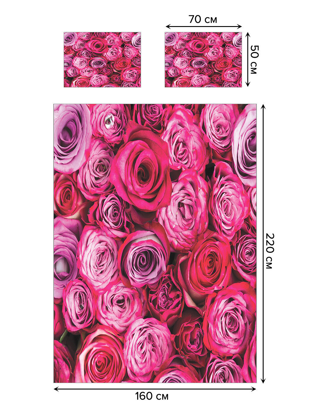 Модель: Покрывало Фуксиевые розы 220x160 и две наволочки 70х50