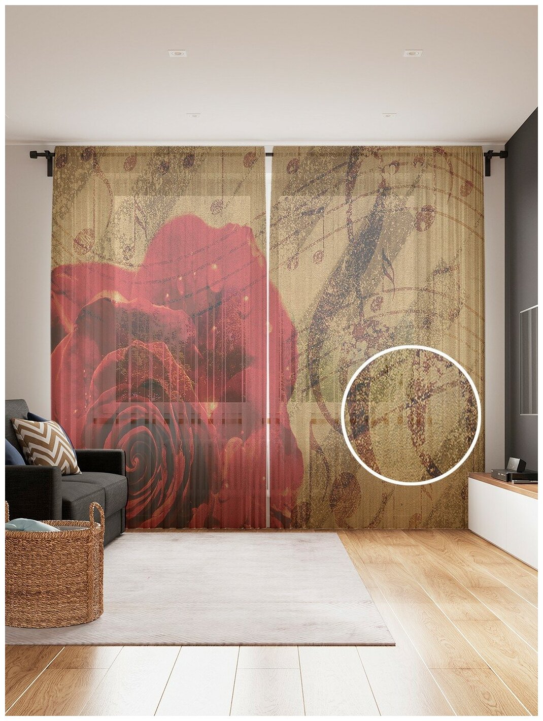 Фототюль JoyArty "Скрипичный ключ и красная роза" 145x265см 2 полотна лента 50 крючков Фототюль Скрипичный ключ и красная роза 2 полотна со шторной лентой+ 50 крючков 145x265 см