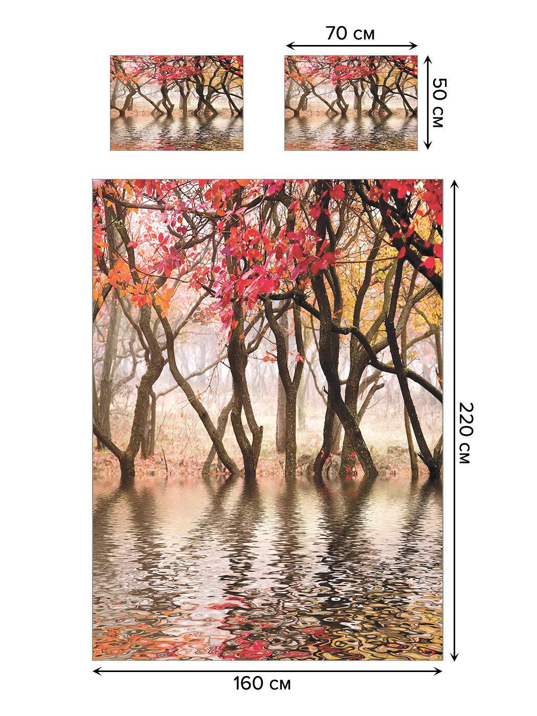Модель: Покрывало Лес на озере 220x160 и две наволочки 70х50