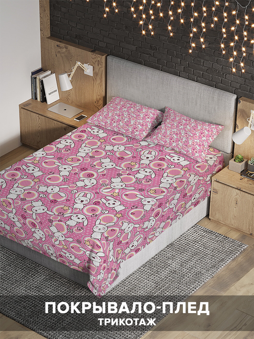 Модель: Покрывало на 1.5-спальную кровать Милые кролики 220х160 и две наволочки 70x50