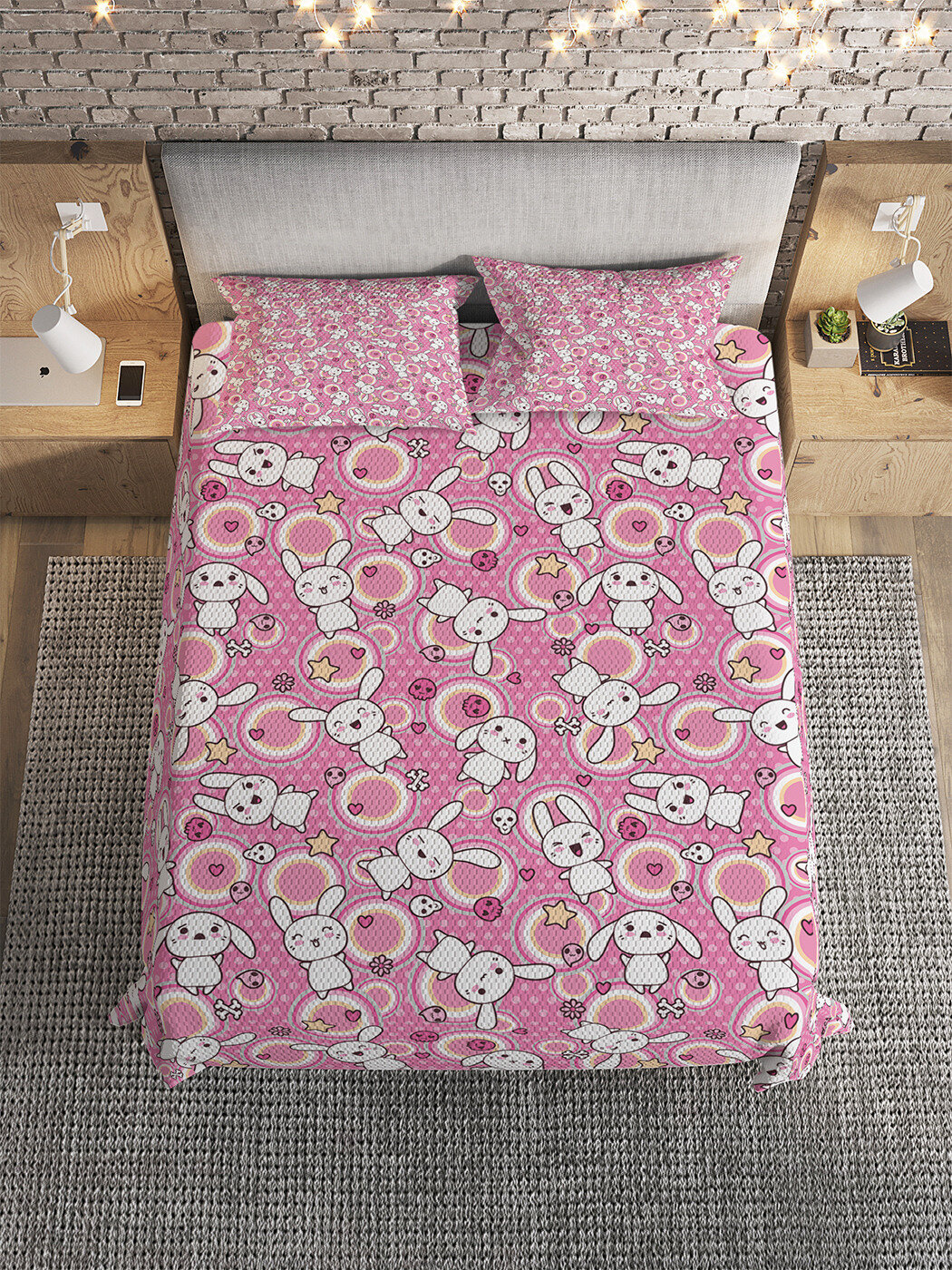 Покрывало с чехлами Ambesonne bcsl_50011 160x220 см розовый Покрывало на 1.5-спальную кровать Милые кролики 220х160 и две наволочки 70x50 (размер: 1.5-спальный)