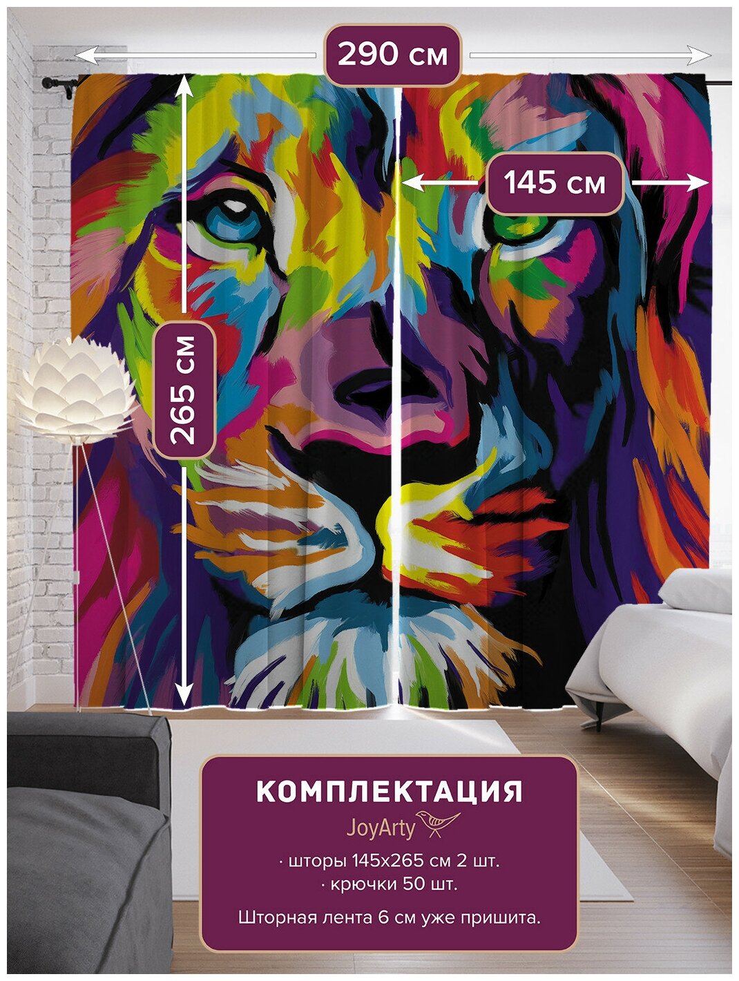 Шторы 3D "Лев в ярких красках" из сатена 290х265 см JoyArty Шторы с фотопечатью Лев в ярких красках из сатена 290х265 см