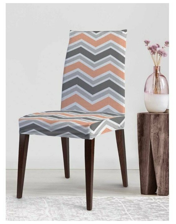 Модель: Декоративный велюровый чехол на стул со спинкой Просторы зигзагов