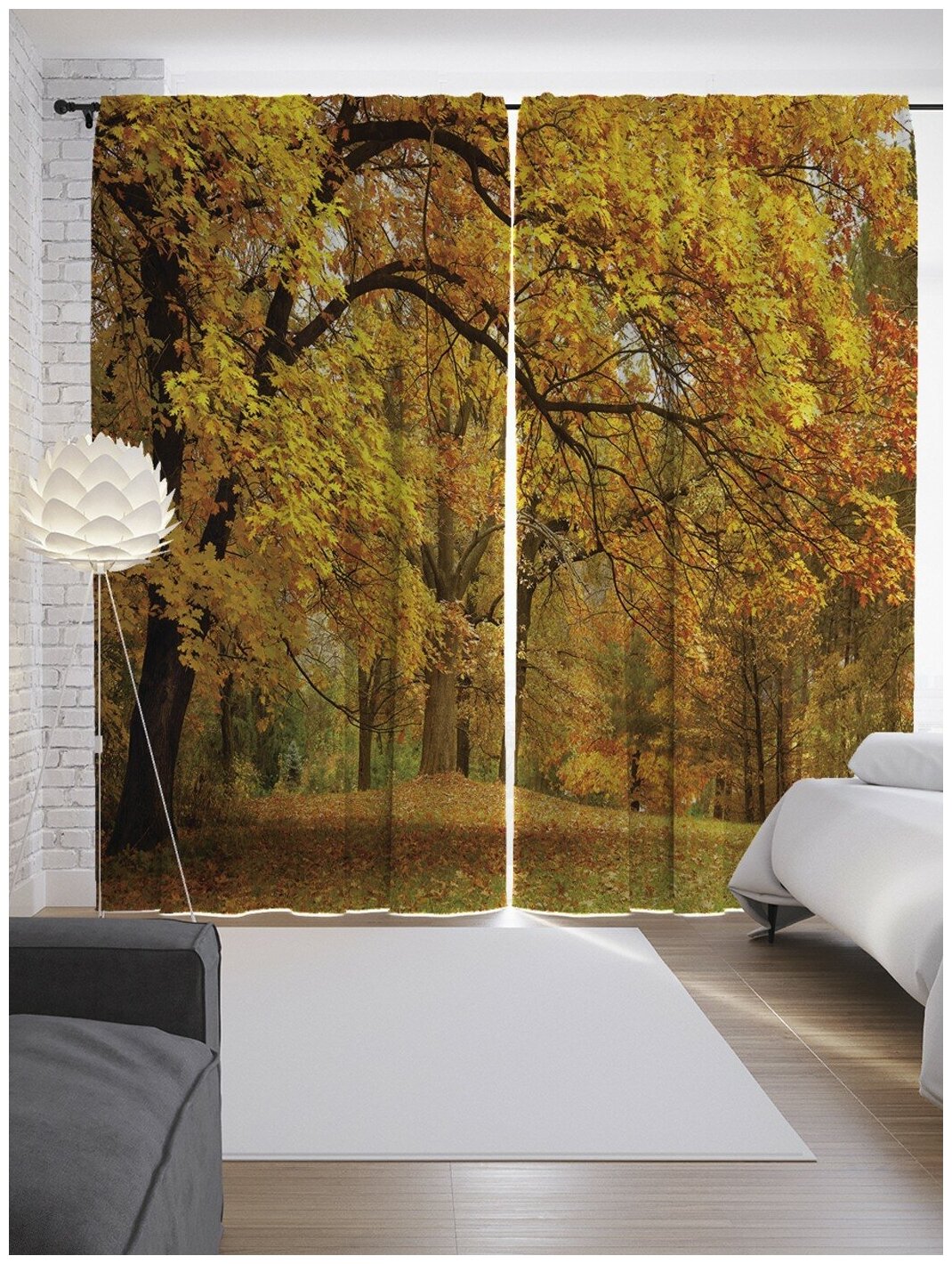 Модель: Шторы с фотопечатью Желтеющий лес из сатена 290х265 см