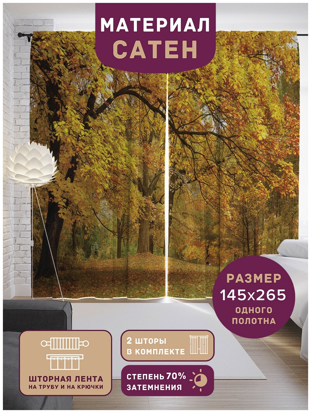 На сегодняшний день товар «Фотошторы JoyArty Желтеющий лес на ленте p-15747 140х260 см 2 шт. разноцветный Шторы с фотопечатью Желтеющий лес из сатена 290х265 см» можно купить с кешбеком в 1 магазине: Яндекс.Маркет