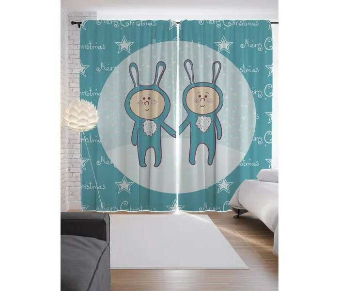 Шторы с фотопечатью "Праздник у камина" из сатена 290х265 см JoyArty Фотошторы для кухни и спальни Новогодние братишки-зайчишки 265х145 см