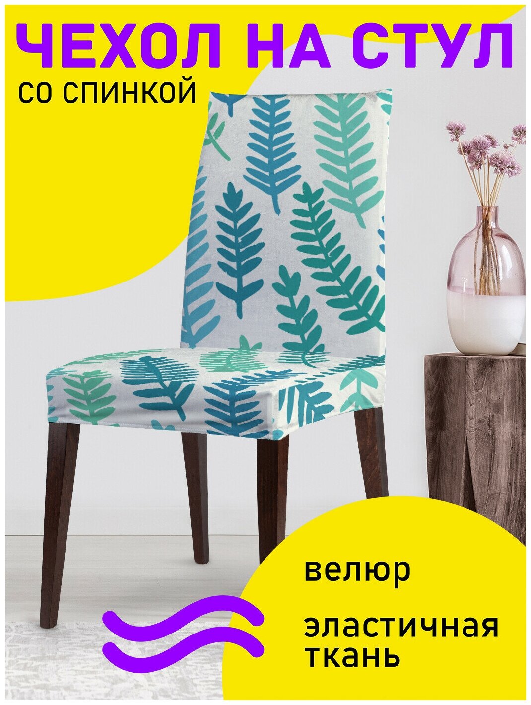 Модель: Декоративный чехол на стул Лиственный узор со спинкой велюровый