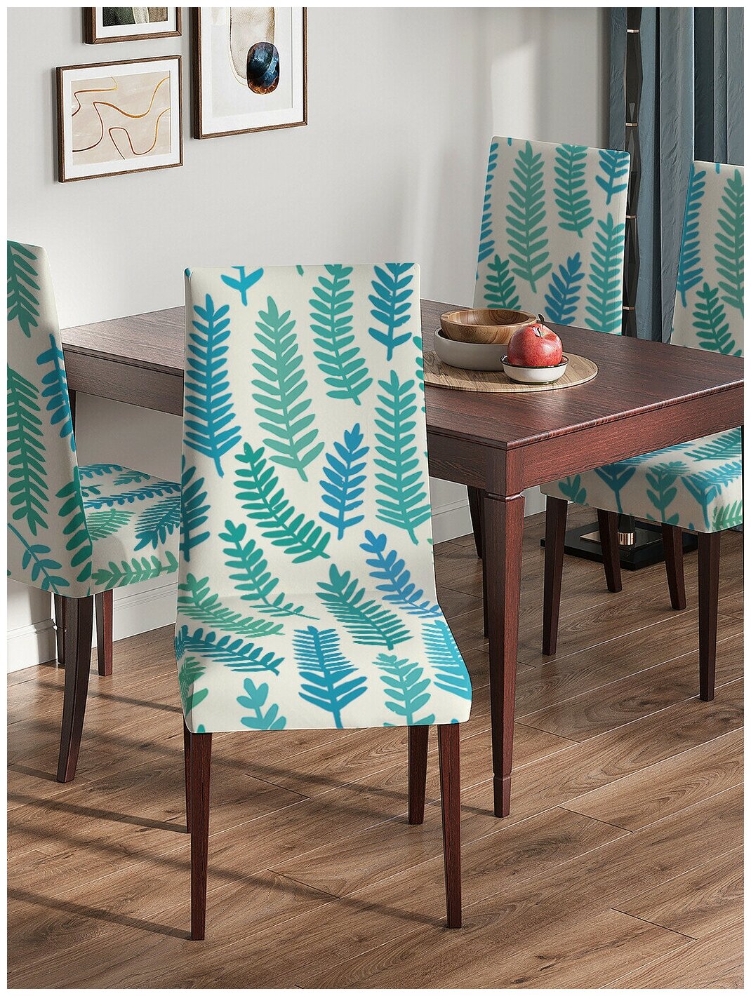 Принт нанесен на ткань методом сублимационной печати, благодаря чему чехлы надолго сохраняют яркость красок и устойчивы перед множеством стирок. Съемные тканевые чехлы представлены в одном размере и подходят на стулья с высотой спинки от 40 до 60 см, и шириной сидения 40-55 см.