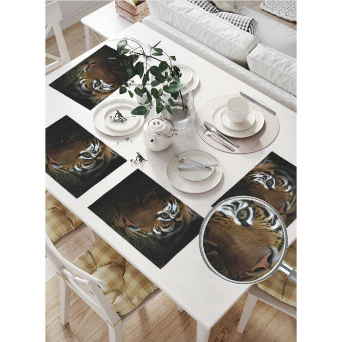 Комплект тканевых салфеток для сервировки стола JOYARTY Комплект тканевых салфеток Тигр в тени 46x32 см 4 шт.