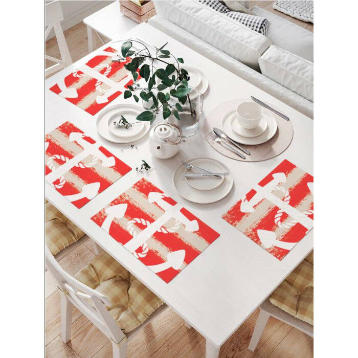 Сервировочные селфетки JoyArty "Якорь и полосы" (32х46 см 4 шт.) Комплект тканевых салфеток Якорь и полосы 46x32 см 4шт.