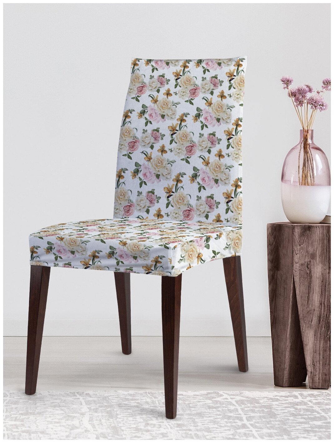 Модель: Декоративный чехол на стул Узор из роз со спинкой велюровый