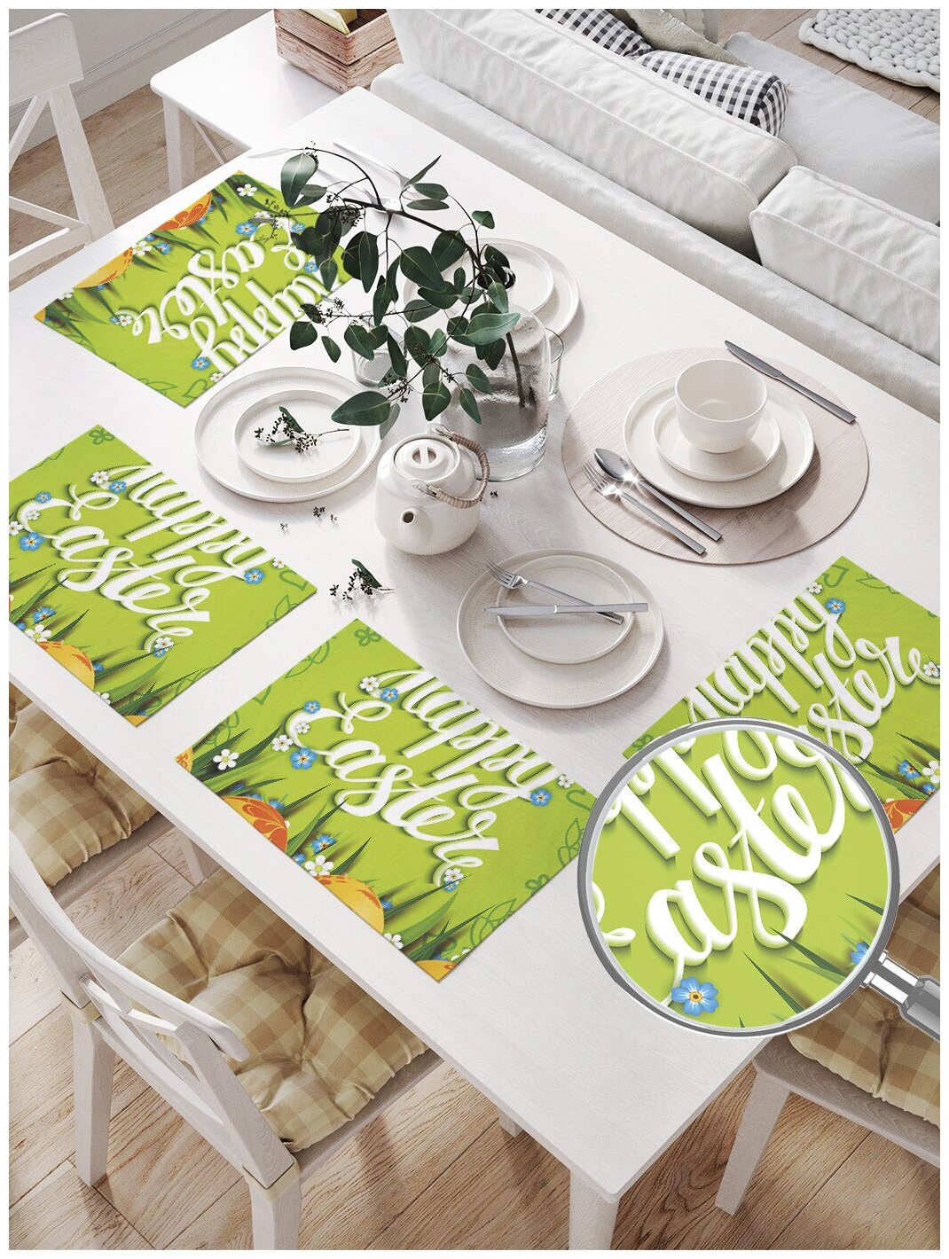 Текстильные салфетки изготовлены из прочного и износостойкого материала оксфорд, обработанного водоотталкивающей пропиткой. Печать на изделие наносится при помощи гипоаллергенных чернил, такой способ подходит для кухни и позволяет сохранить яркость рисунка вне зависимости от количества стирок.
