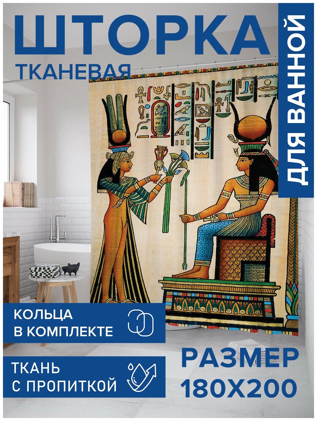Шторка-занавеска для ванной JOYARTY Штора занавеска из сатена с крючками Подношение к царице 200х180 см (размер: 180х200)