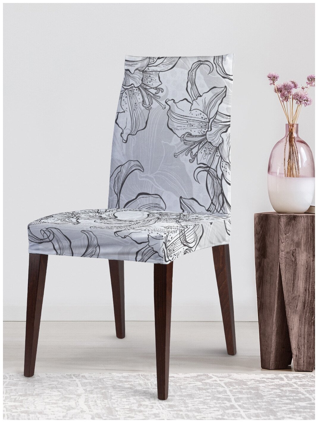 Модель: Декоративный чехол на стул Цветочный узор карандашом со спинкой велюровый