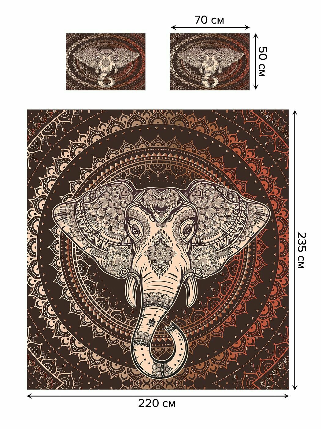 Модель: Покрывало Слоновая мандала 235x220 и две наволочки 70х50
