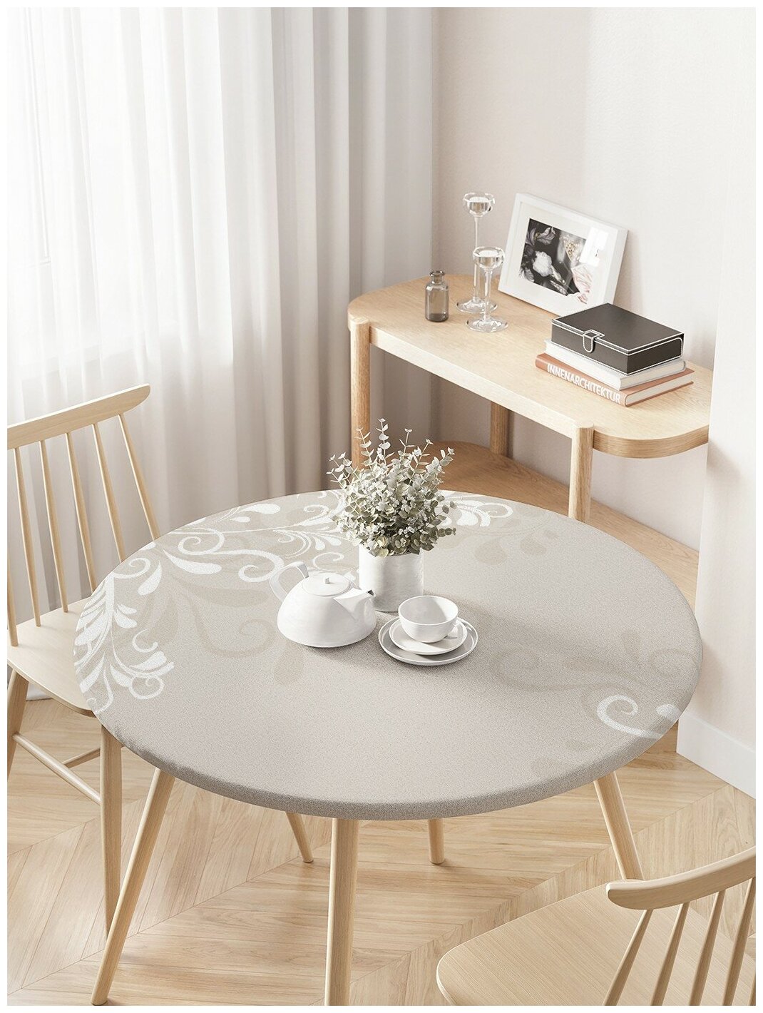 Круглая кухонная скатерть на резинке JoyArty на круглый стол диаметром 105-120 см Скатерть на кухонный стол Веточки в бутах круглая на резинке 105x120 cм