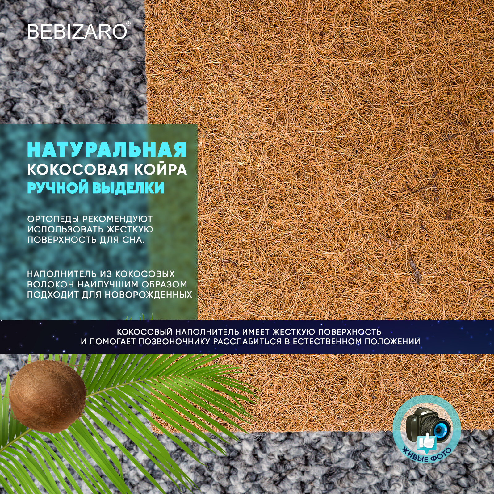 Латексированная кокосовая койра (10 мм) - создает максимальный ортопедический эффект и рекомендуется для новорожденных.