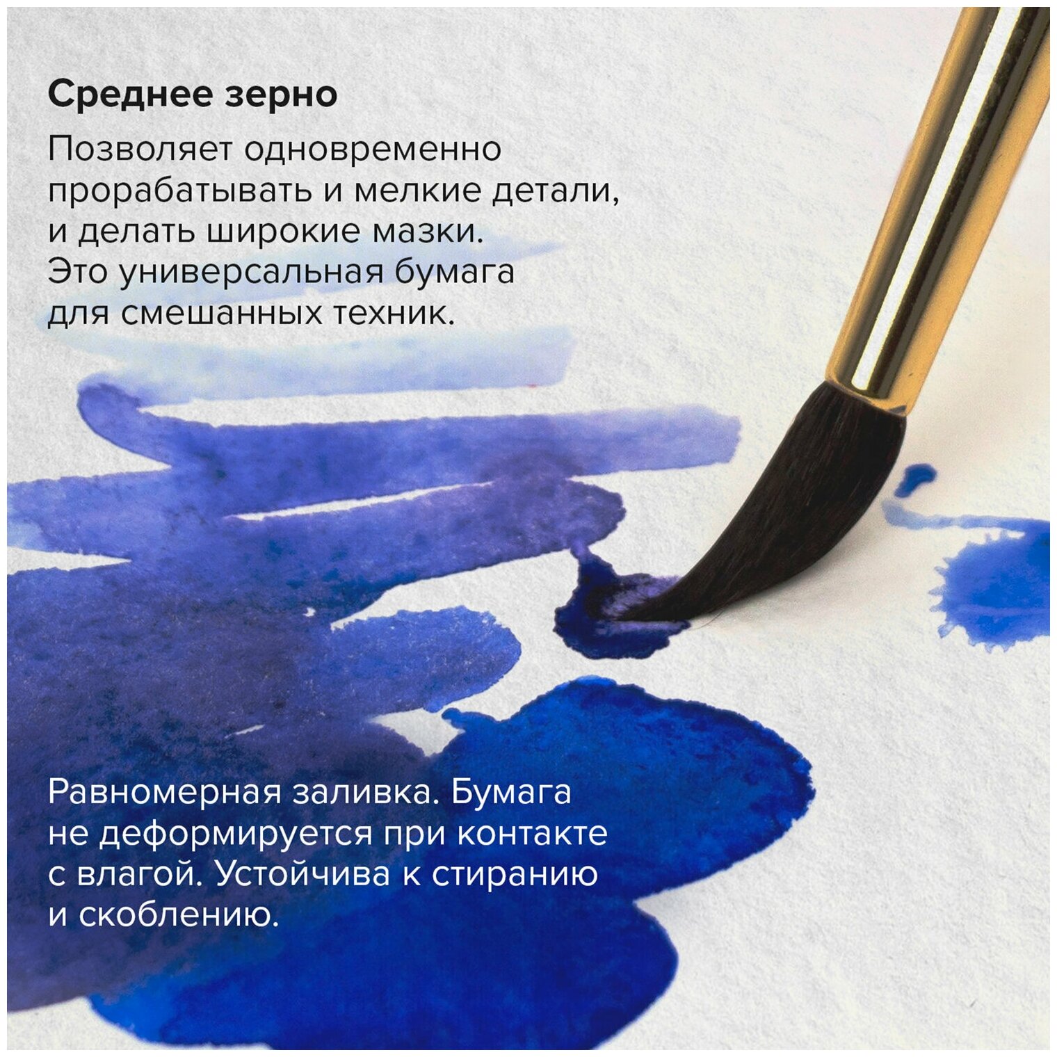Идеально держит цвет, тона останутся выразительными и экспрессивными. Без кислот, что гарантирует долговечность ваших творений! Бумага подойдет как для начинающих любителей акварельной живописи, так и для выражения самых смелых идей профессионалов.