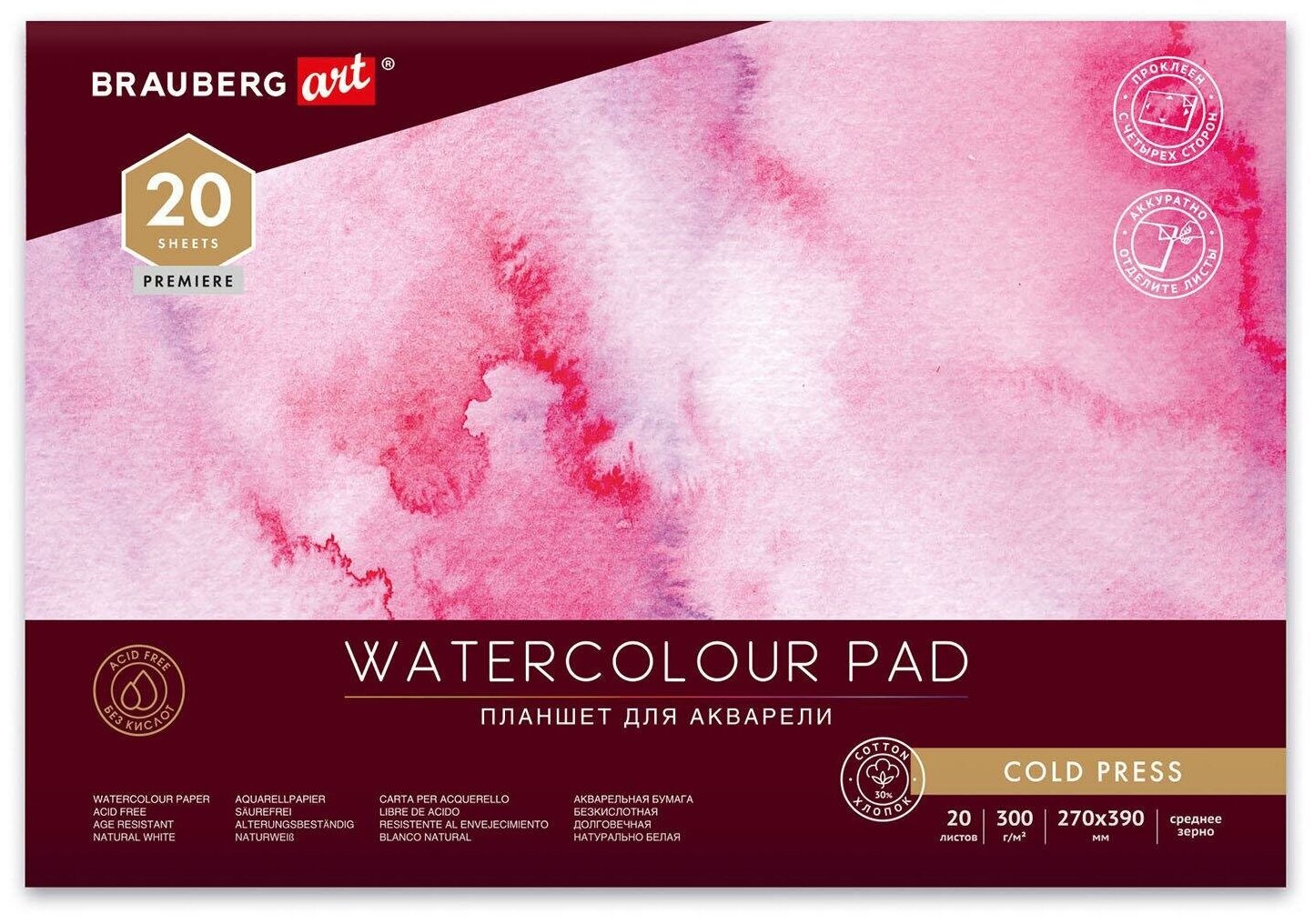 Планшет для акварели Brauberg ART PREMIERE (113252) Art Планшет для акварели хлопок 30% среднее зерно 390х270 мм 20 листов