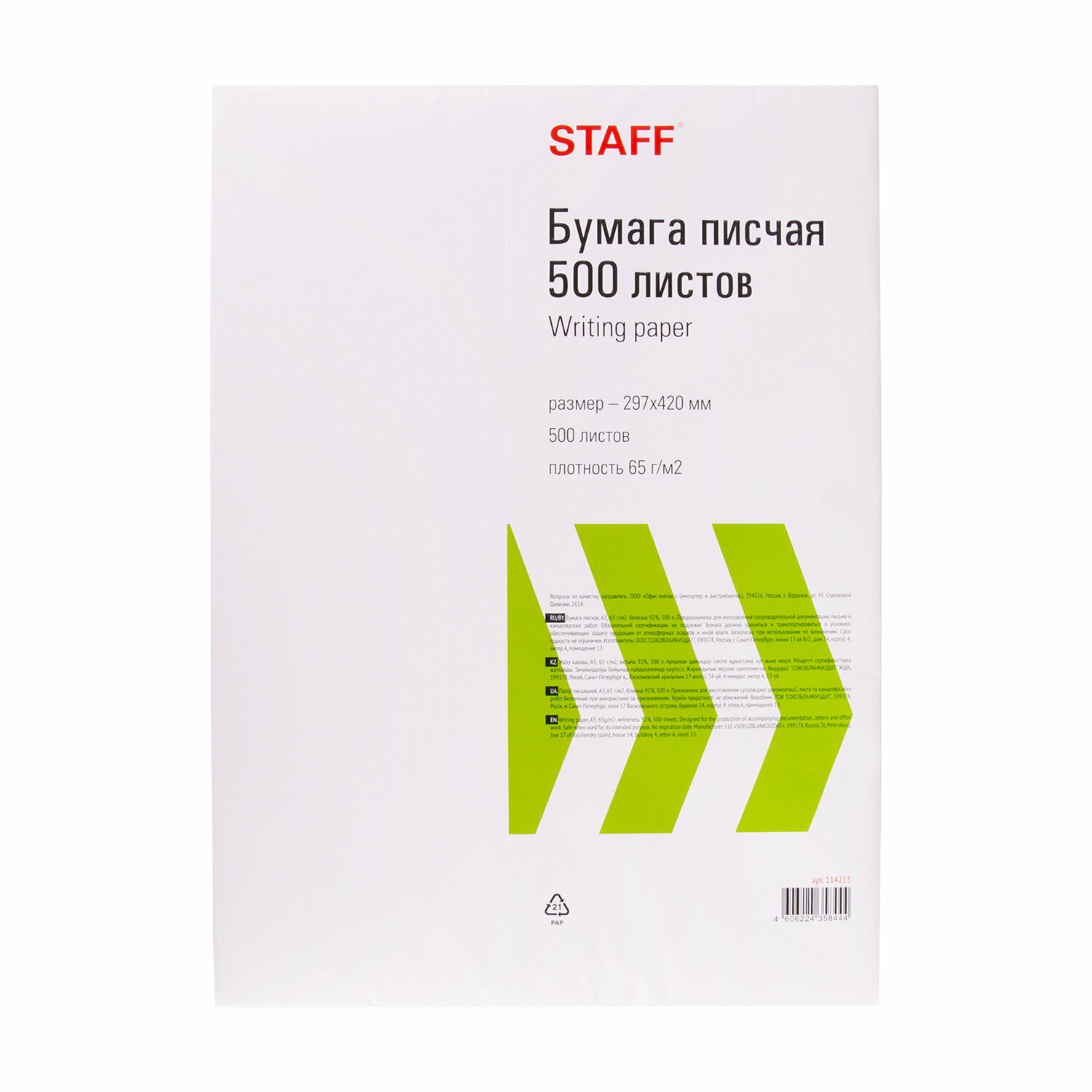 Бумага STAFF A3 500л 65г/м2 белый Бумага писчая А3 500 листов