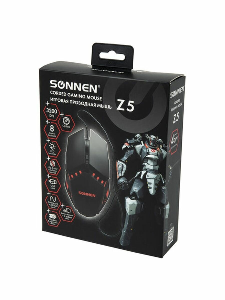Мышь проводная SONNEN 3200dpi оптическая светодиодная USB черный (513521) Мышь проводная игровая Z5