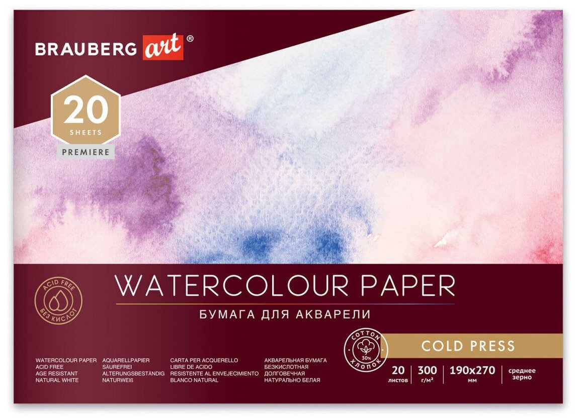 На сегодняшний день товар «Альбом для акварели Brauberg ART ХЛОПОК 30% 300 г/м2 190х270 мм среднее зерно 20 листов склейка (113219) Art Premiere Альбом для акварели хлопок среднее зерно 270x190 мм 20 листов» можно купить с кешбеком в 1 магазине: Яндекс.Маркет