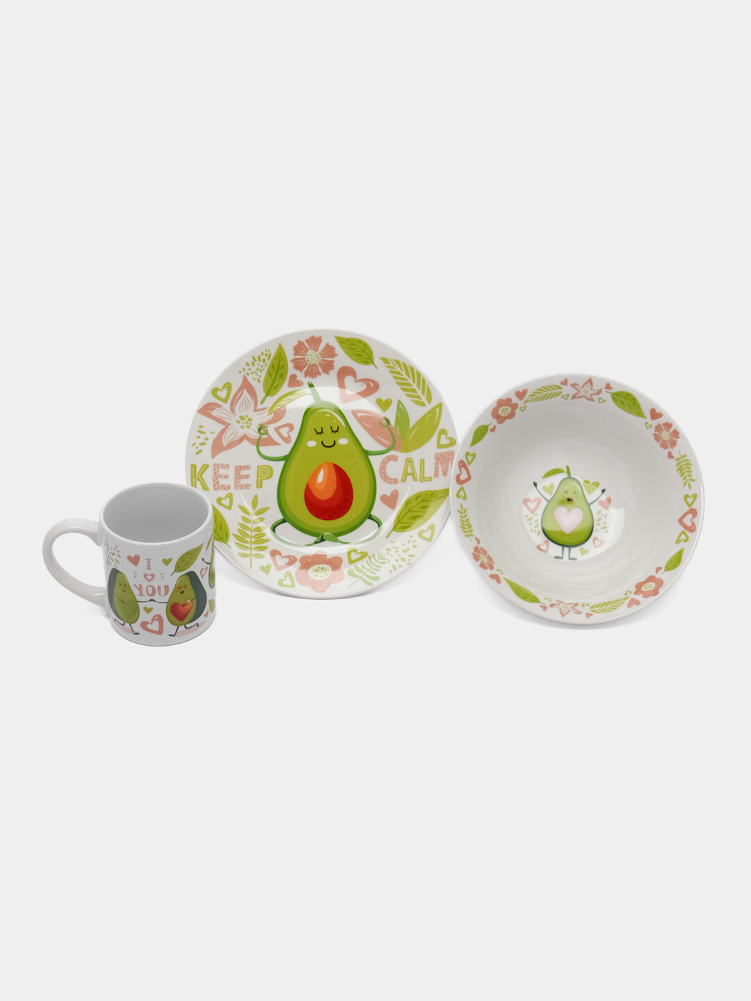 Модель: Набор посуды в подарочной упаковке Авокадо Keep Calm 3 предмета фарфор