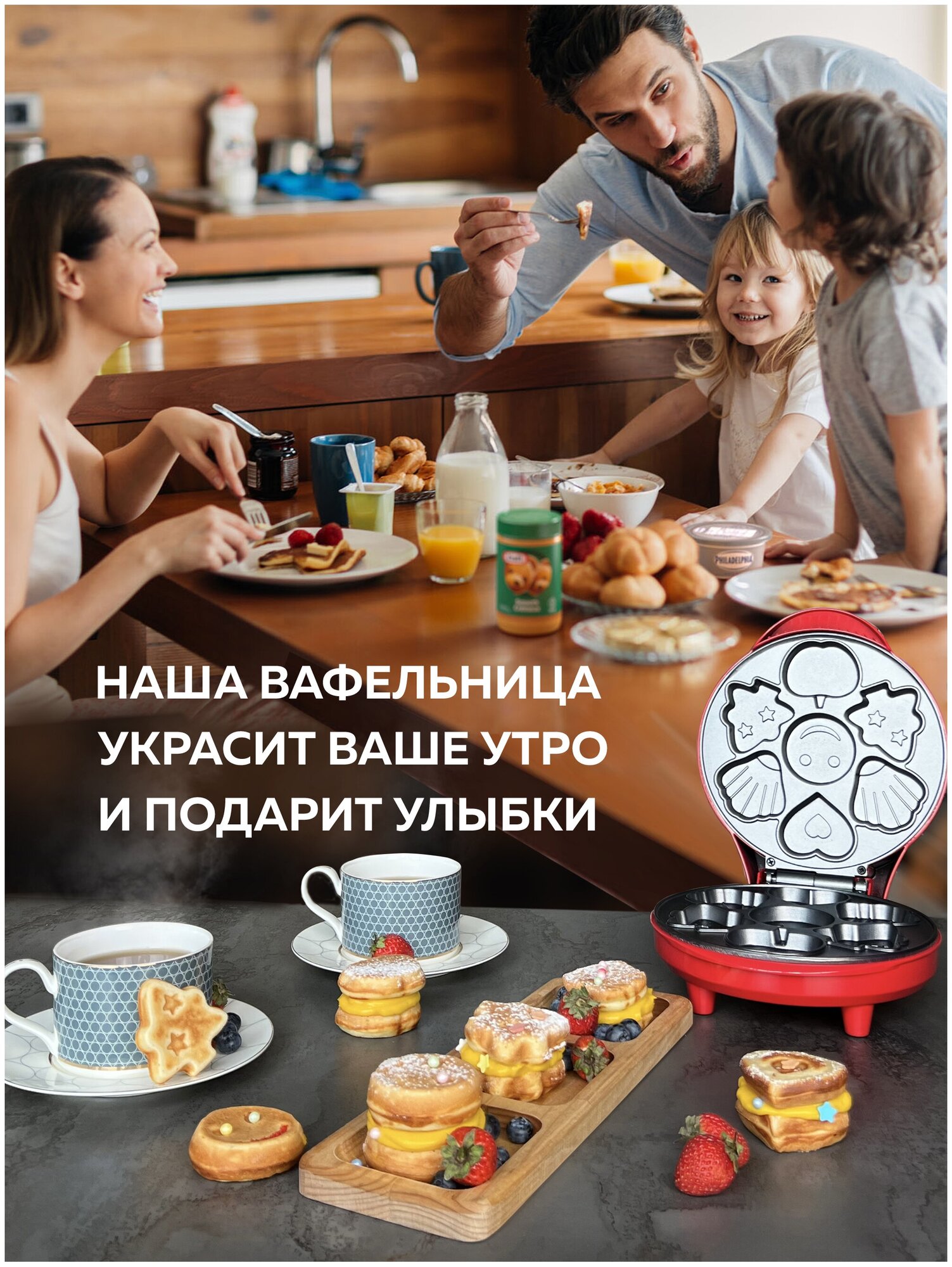 Вафельница GFgril красный Вафельница с фигурными вафлями GFW-032