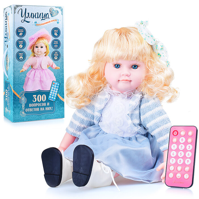 Какая кукла может стать лучшей подружкой девочки? Интерактивная кукла «Умница»! Если кукле задавать определенные вопросы, то она будет на них отвечать. На каждый вопрос у нее несколько вариантов ответов! Если попросить ее спеть песню, то она споет одну из милых детских песенок (на английском языке).