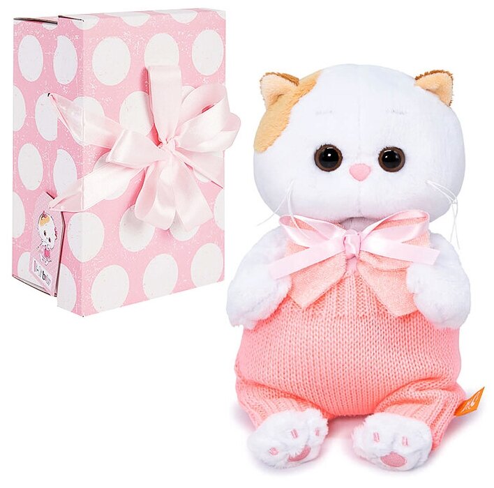 Лиличка в симпатичных вязаных штанишках лососевого цвета. В комплекте — сложный бант из двух лент в тон штанишек. Познакомьтесь, кошечка Ли-Ли - одна из самых трогательных представительниц породы экзотических короткошерстных. Малышку очень приятно обнимать и гладить по мягкой белой шерстке. Игрушка поставляется в закрытой подарочной коробке, подвязанной атласными лентами.