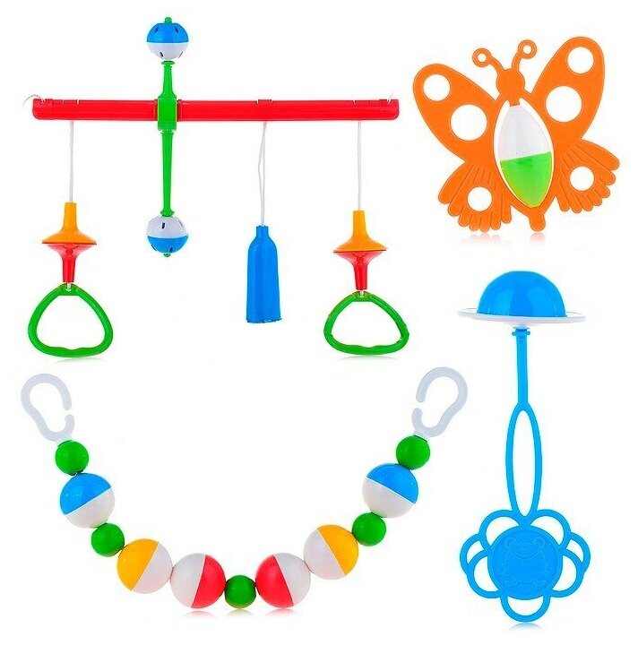 Погремушки – это первые игрушки малыша. Они необходимы ему для развития сенсорной и моторной сферы, что в свою очередь стимулирует развитие мозга. Для полноценного развития малышу нужны погремушки разных цветов, форм, с разными рукоятками. Потому наш набор идеально подходит для подарка ребенку. Для детей от 0 мес. Развивает остроту зрения и слуха, цветовосприятие, тактильную чувствительность, мелкую моторику. Формирует зрительно-моторную и зрительно-слуховую координацию.