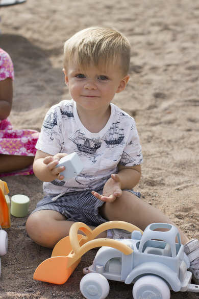 Функциональная игрушка из особой биопластмассы, выдерживает вес малыша. Все края закруглены. Колеса надежно посажены на крепкие металлические оси, не гремят, не оставляют на полу следов. Машину можно мыть в посудомоечной машине. Для детей от 1 года.