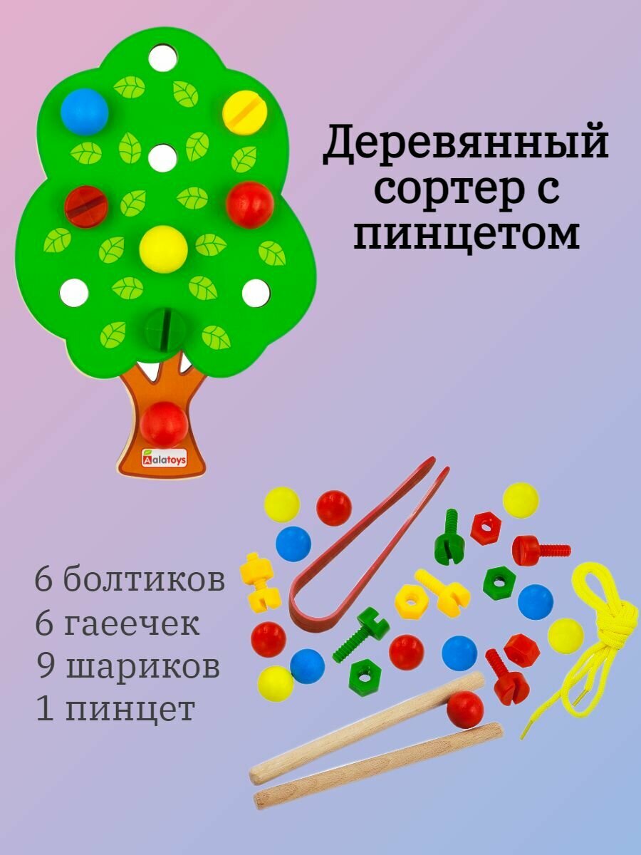 Деревянная игрушка Alatoys Сортер с пинцетом