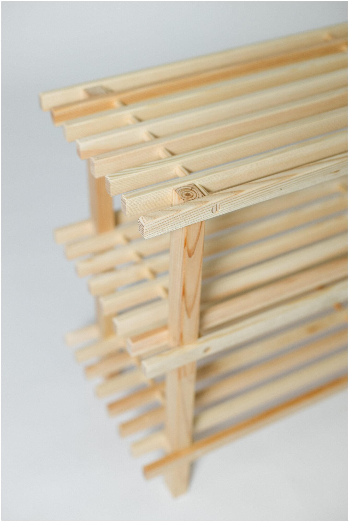 Обувница найдет место практически в любом помещении - в прихожей, гостиной, на балконе, в детской - везде будут рады красивой вещице. Учитывая, что каркас обувницы только отшлифован и не имеет покрытия, вы сможете стать художником декоратором и покрасить изделие в любой цвет своими силами. Для этого вы можете использовать морилку, краску, эмаль или только лак, а можете оставить без изменений, наслаждаясь цветом и текстурой настоящей древесины.