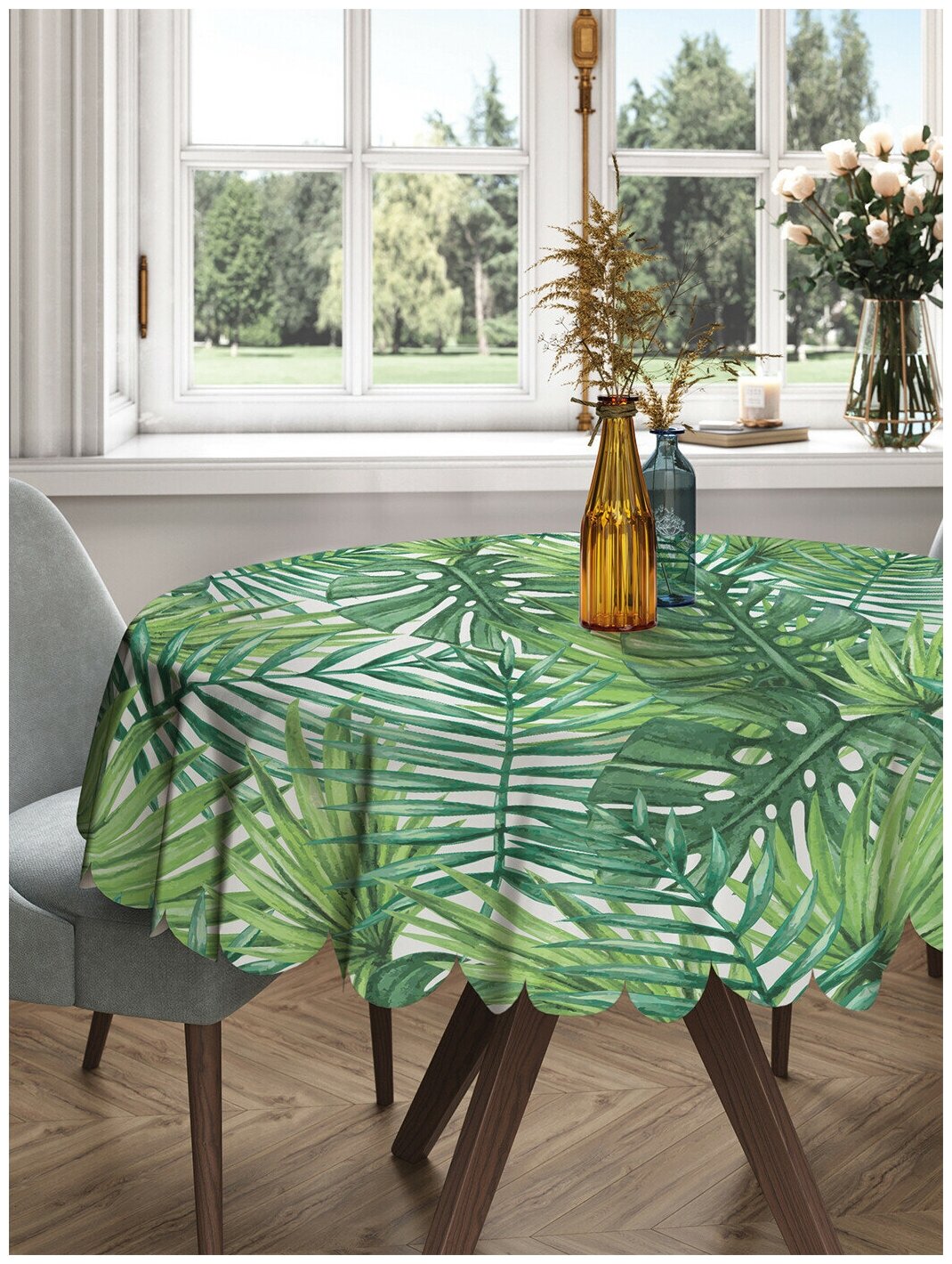 Скатерть на стол – незаменимая деталь для создания уюта и стиля вашей кухни. Круглая скатерть диаметром 150 см представлена в широком ассортименте дизайнерских принтов, что позволяет подобрать изделие не только для ежедневного использования, но для семейных и тематических праздников.