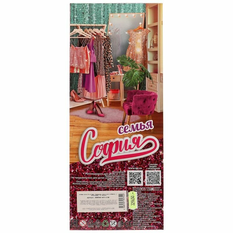 Будущая мама София одета в базовую кофточку и яркий зелёный сарафан. Образ куколки дополняют модные крупные серьги. Одежду и аксессуары легко снять и надеть. С такой модной куклой девочке будет интересно и весело играть: благодаря тому, что руки и ноги куклы подвижны, им можно придать любое положение. У Софии длинные красивые волосы, которые хозяйка куклы сможет заплетать в разные причёски. Детально проработанный дизайн игрушки вдохновит девочку на новые игровые сюжеты.