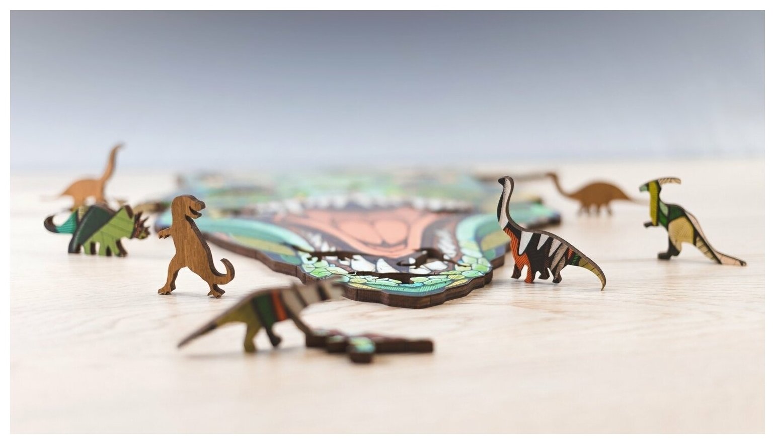 Модель: Деревянный пазл-головоломка Ewa Динозавр T-Rex Xl 40x24 см коробка-шкатулка