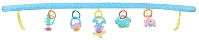 Эту дугу можно закрепить на детской кроватке, коляске или автокресле с помощью удобных прищепок. Угол наклона дуги регулируется. Сначала малыш будет просто рассматривать яркие игрушки, лежа на спинке, но со временем он обязательно начнет тянуться к ним ручками и ножками, совершенствуя свои двигательные навыки. Игрушки на дуге имеют различные цвета и формы, в том числе материал — специально для развития тактильных ощущений малышей. Изделие изготовлено из текстильных материалов с элементами пластмассы.