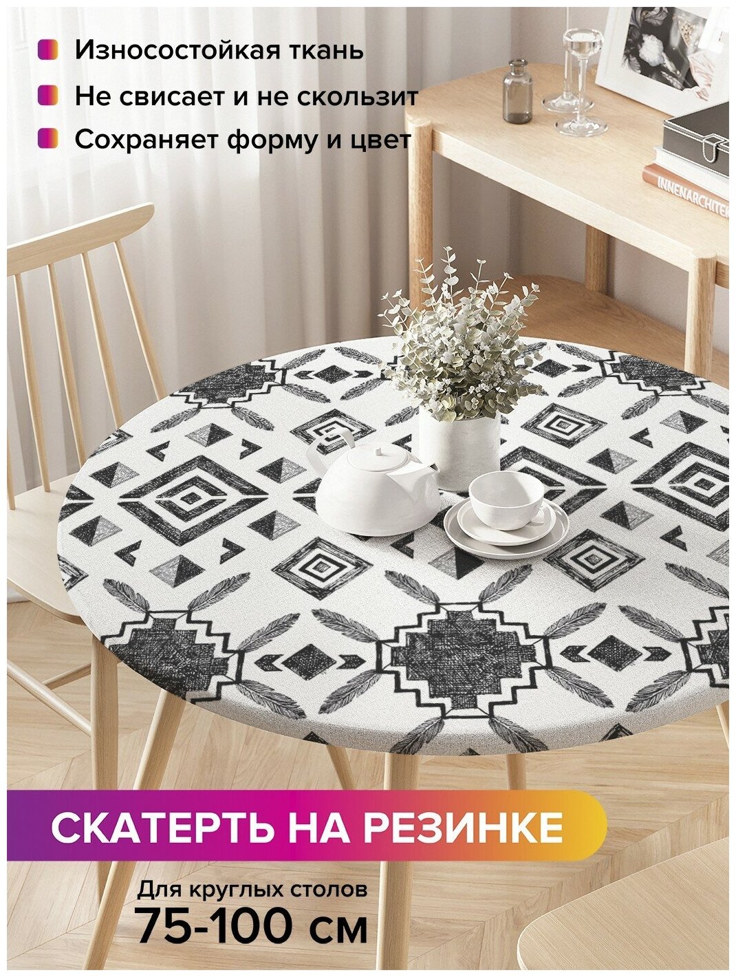 Круглая кухонная скатерть на резинке JoyArty на круглый стол диаметром 75-100 см. Скатерть на кухонный стол Рисунки ацтеков круглая на резинке 75x100 см