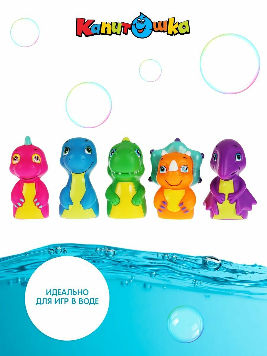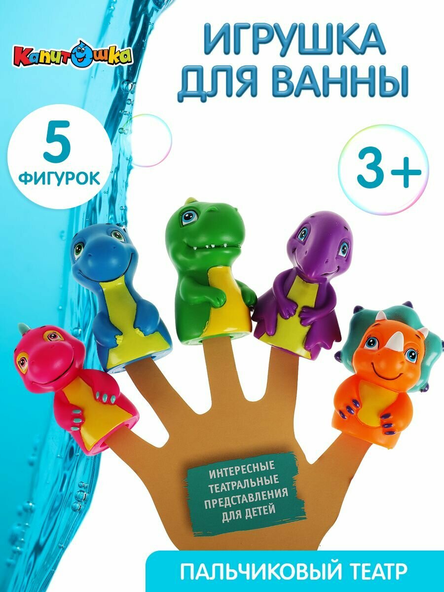 Игрушка из пластизоля для ванны - пальчиковый театр «Динозаврики» ТМ «Капитошка» обязательно понравится малышу и сделает купание ещё более весёлым: