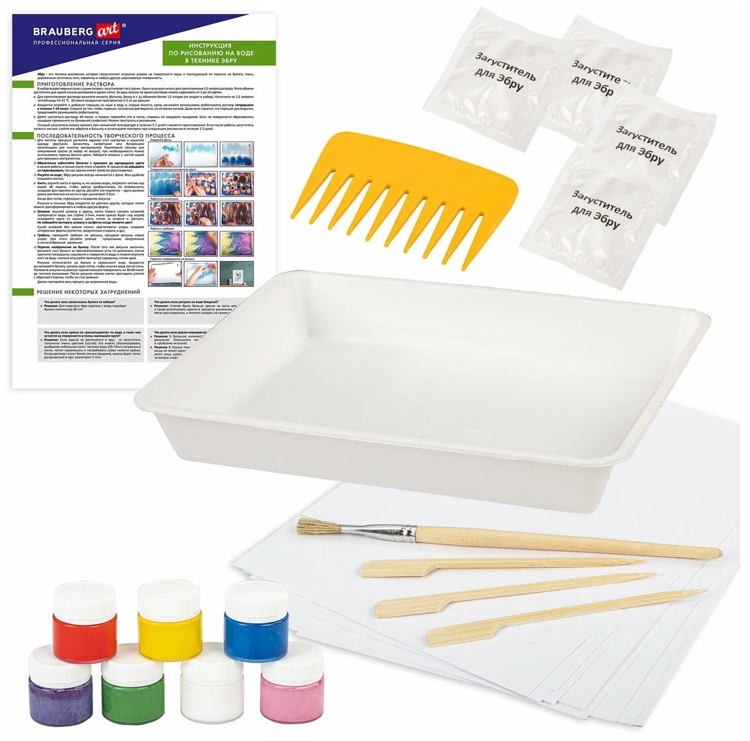 ЭБРУ набор для рисования на воде Brauberg ART (664881) Набор для рисования на воде Эбру 7 цветов 664881