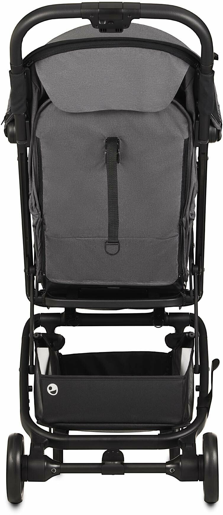 Надёжная алюминиевая рама опирается на четыре полиуретановых колеса, снабженных амортизаторами. Задняя ось шире передней, на ней расположен стояночный тормоз. Передние поворотные колёса по диаметру меньше, но именно они способствуют хорошей манёвренности. При движении по неровной дороге их лучше зафиксировать в положении «прямо». На раме имеется сетчатая корзина для вещей – хорошая возможность освободить мамины руки от тяжестей, позволяя ей лучше заботиться о крохе.