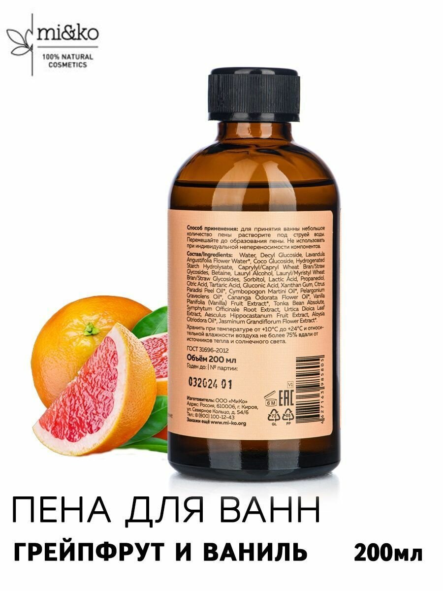 | Полное наименование | Mi&Ko Пена для ванн Грейпфрут и Ваниль 200мл |