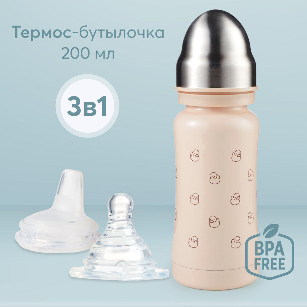 Модель: термо с силиконовой соской и соской-поильником 200 мл