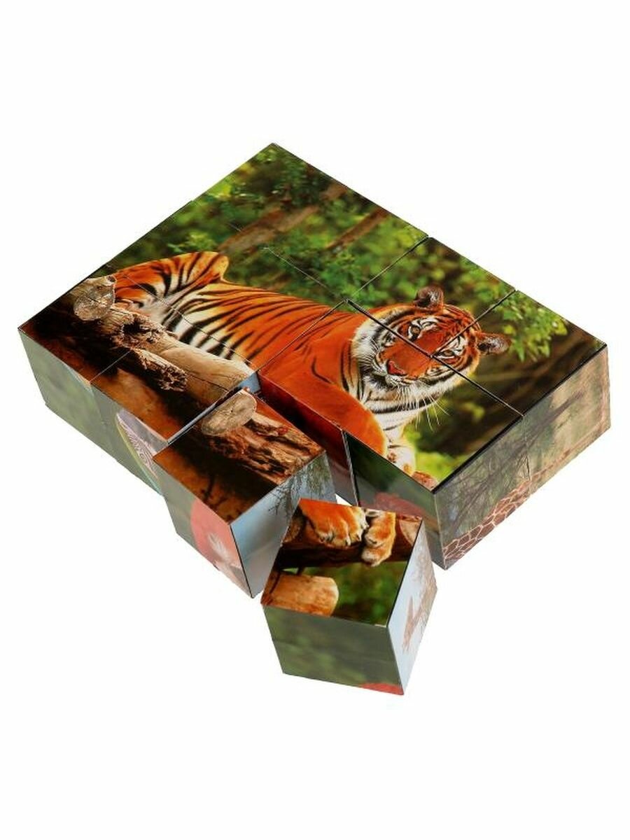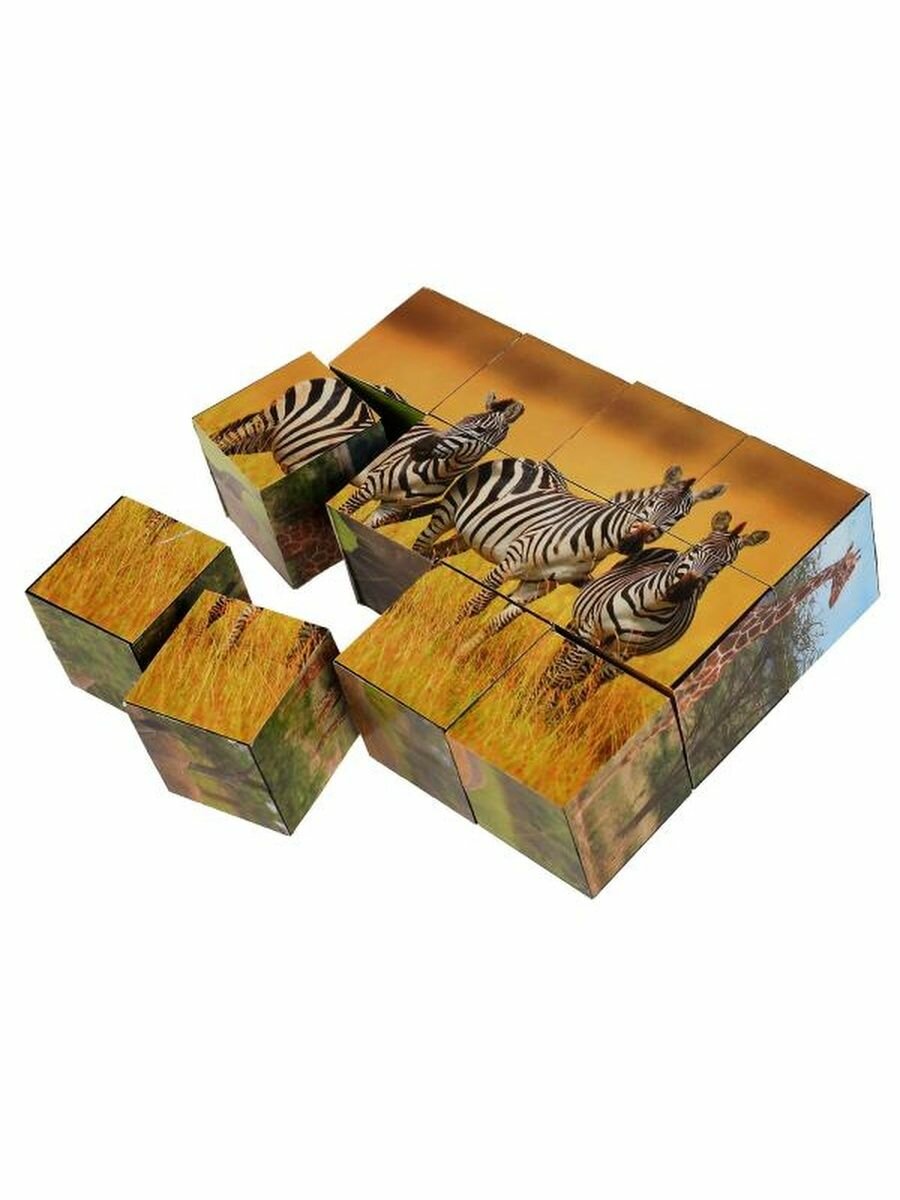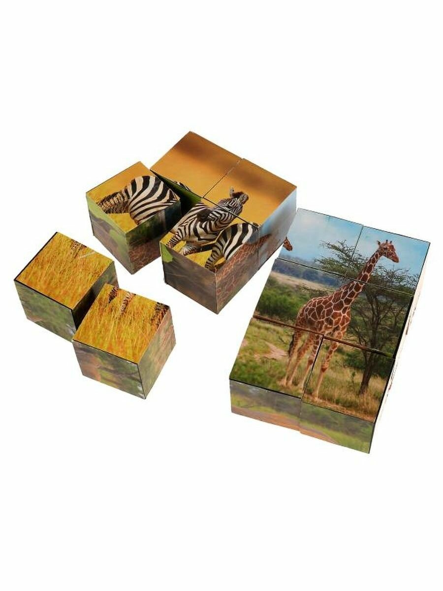 Кубики – одна из первых игрушек малыша, занимающая важное место в его развитии. Из входящих в данный набор кубиков ребёнок с удовольствием будет собирать разные варианты красочных картинок с изображением разных экзотических животных.