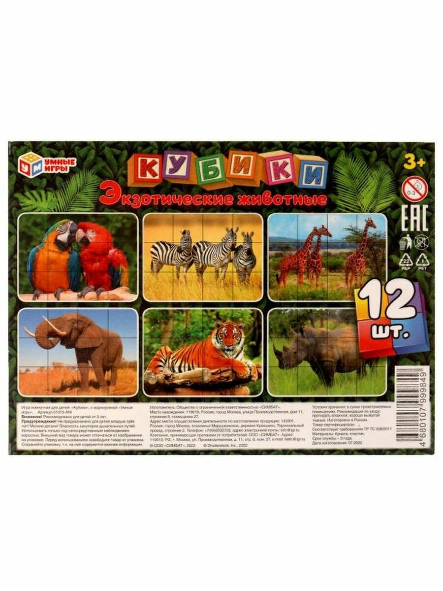 Развивающая игрушка Умные игры Набор из 12-и кубиков пленка Экзотические животные