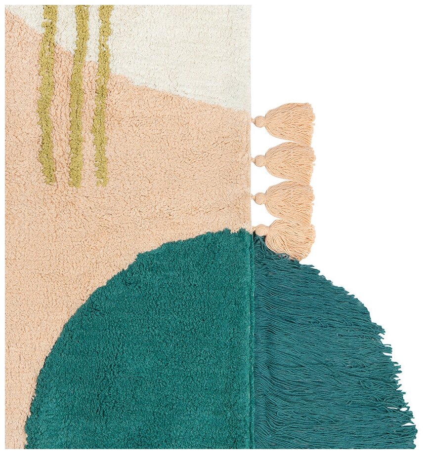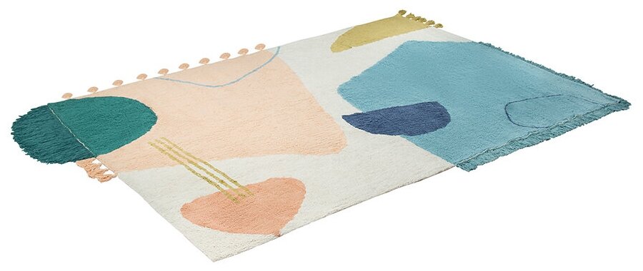 Ковер из хлопка с геометрическим принтом, бахромой и кисточками из коллекции Ethnic органично впишется в любой интерьер: от минимализма и фьюжн, до скандинавского и бохо. Оригинальное изделие из высококачественного и прочного хлопка станет ярким акцентом в детской и другой комнате. На ковре органично сочетаются различные фактуры и объемный декор. В интерьере можно дополнить подушками в том же стиле.